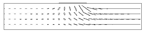 Because heads have steady and harmonic components, specific discharge and velocity also have both steady and harmonic components, in both x and z directions. Harmonic variations in velocities result in velocity and displacement ellipses (Figure 3), with a displacement ellipse being the same shape and orientation as the velocity ellipse but scaled in magnitude by a factor of P/2p or 1/w.. When superimposed on steady flow, these result in pathlines of three kinds: smooth wavy pathlines, cuspy pathlines (with particles passing through instantaneous stagnation points) and loopy pathlines (Figure 4).